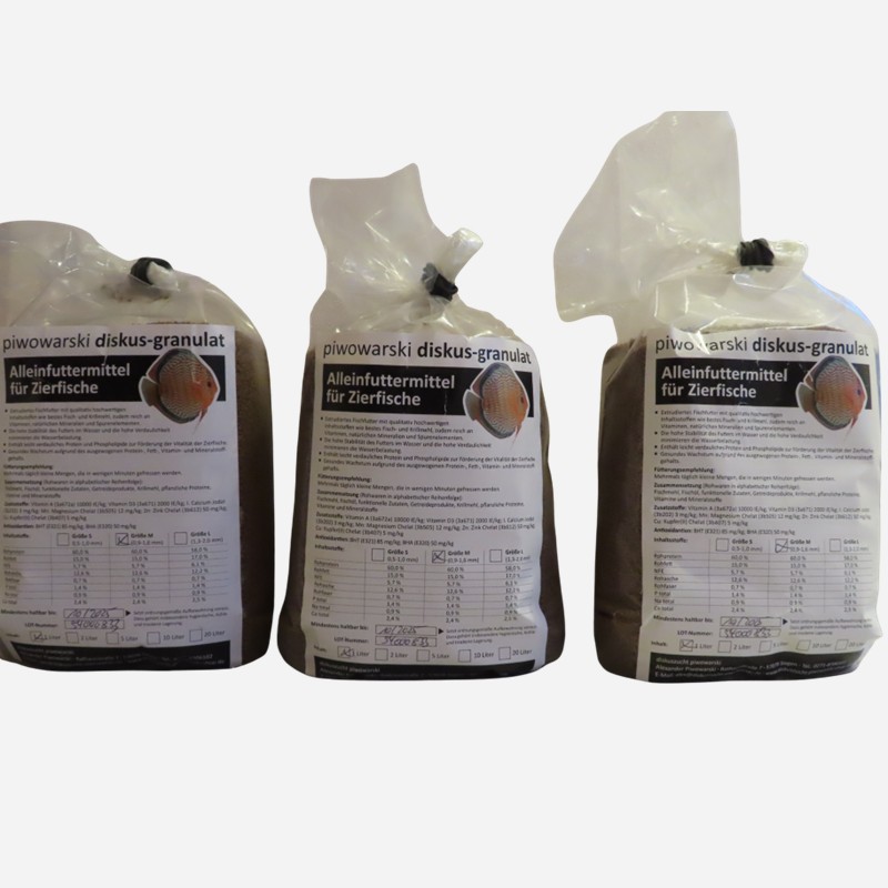Piwowarski Discus Granulate is a sole feed for ornamental fish. The feed consists of fish and krill, supplemented with vitamins, natural minerals and trace elements. The feed is stable in the water, which ensures extremely minimal water pollution.