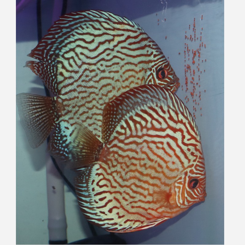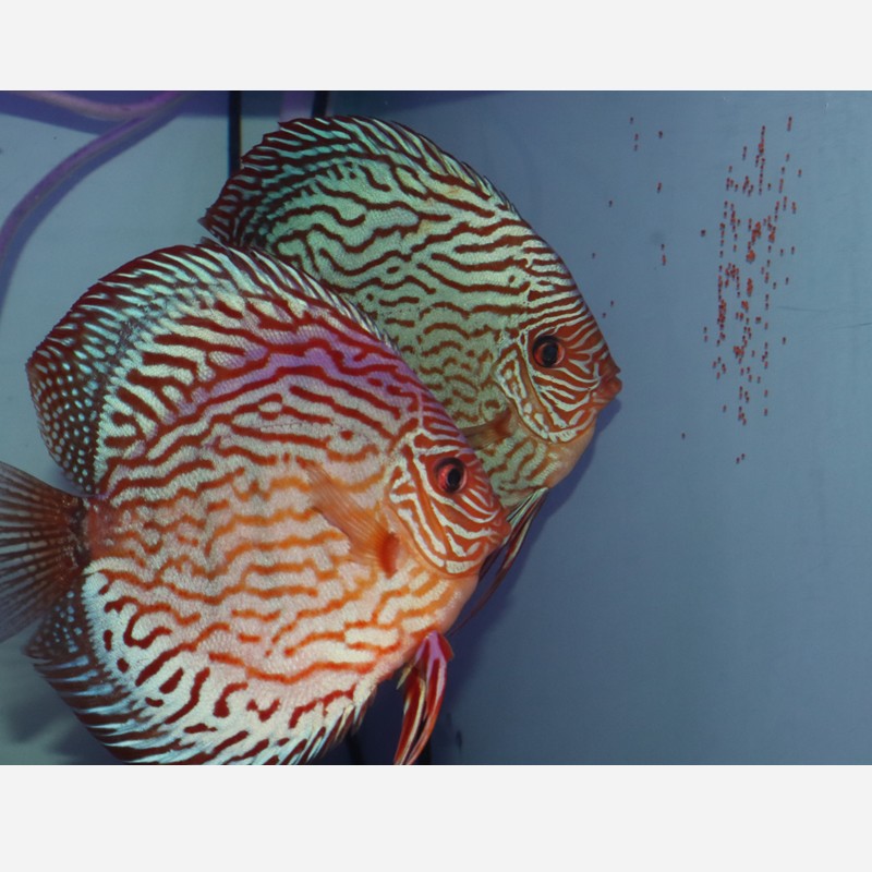 Beautiful young discus pair Piwowarski Brilliant Turquoise, 12-14 cm (female) / 14-15 cm (male). The pair has just laid eggs for the first time (see photos). Personally selected at the Piwowarski breeding facility in Germany.