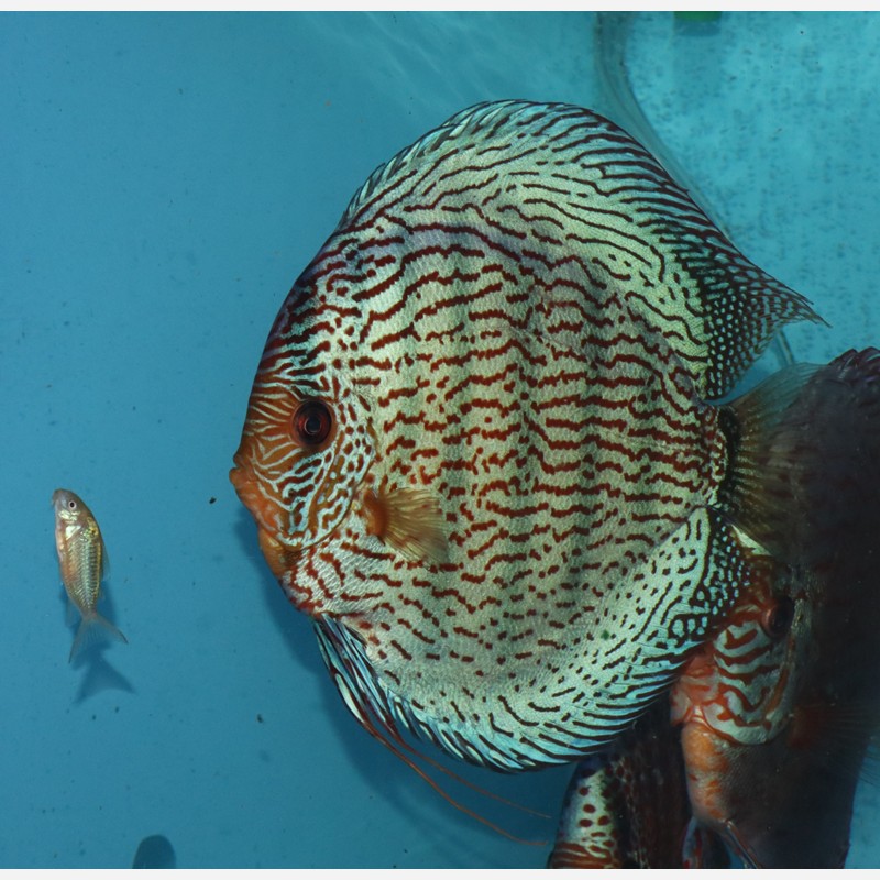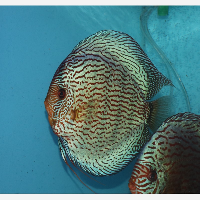 Discusaanbieding van de maand April: prachtige Brilliant Turquoise discusvissen van 7-8 cm, normaal € 39,95 nu slechts € 22,50.